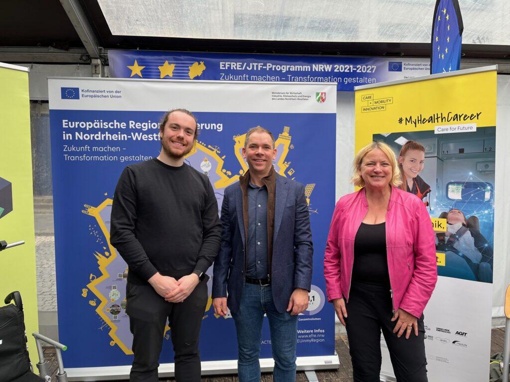 Bei dem Karlspreisfest auf dem Katschhof in Aachen hatte das Wirtschaftsministerium des Landes NRW erstmals mit einem Stand zur europäischen Regionalförderung EFRE.NRW teilgenommen. Unser Projekt Care and Mobility Innovation wurde ausgewählt, die Inhalte der EU-Politik vor Ort sichtbar zu machen.